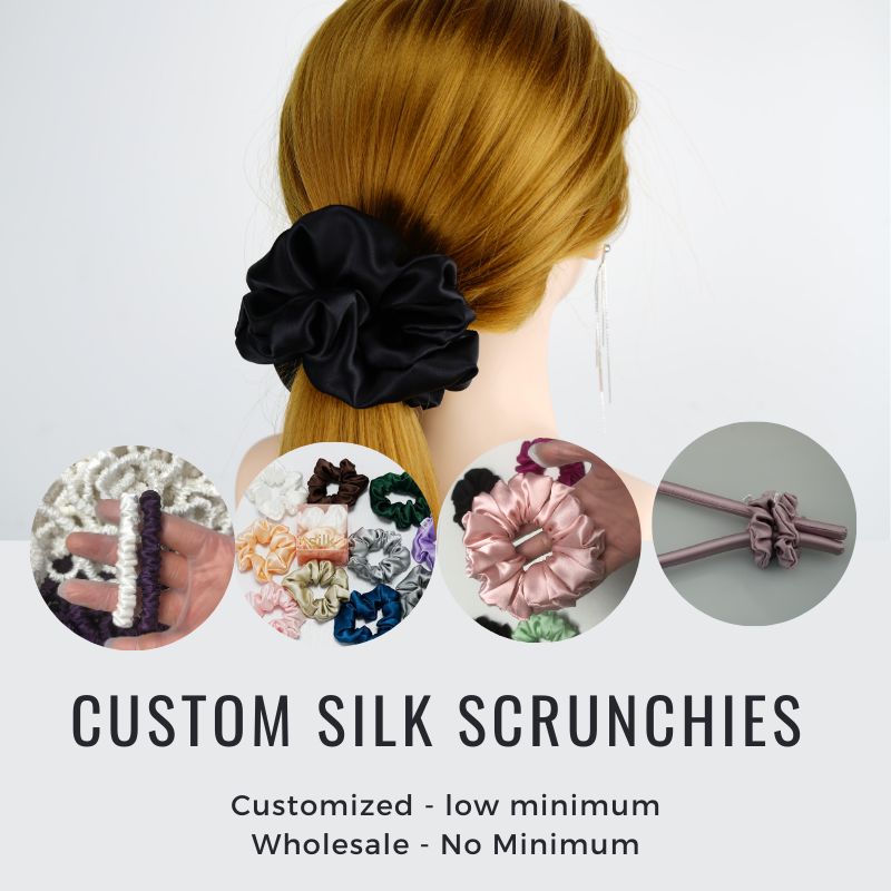Our factory produce multi types silk hair scrunchies, support custom silk scrunchies wholesale service. Custom size / color / types / brand / package / pattern.