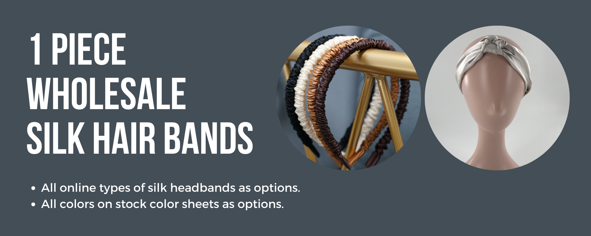 - 1 piece wholesale silk headband - no minimum order quantity. Custom silk headband with brand tag - low minimum order quantity. To learn more, please click on the below each real silk hair bands link.