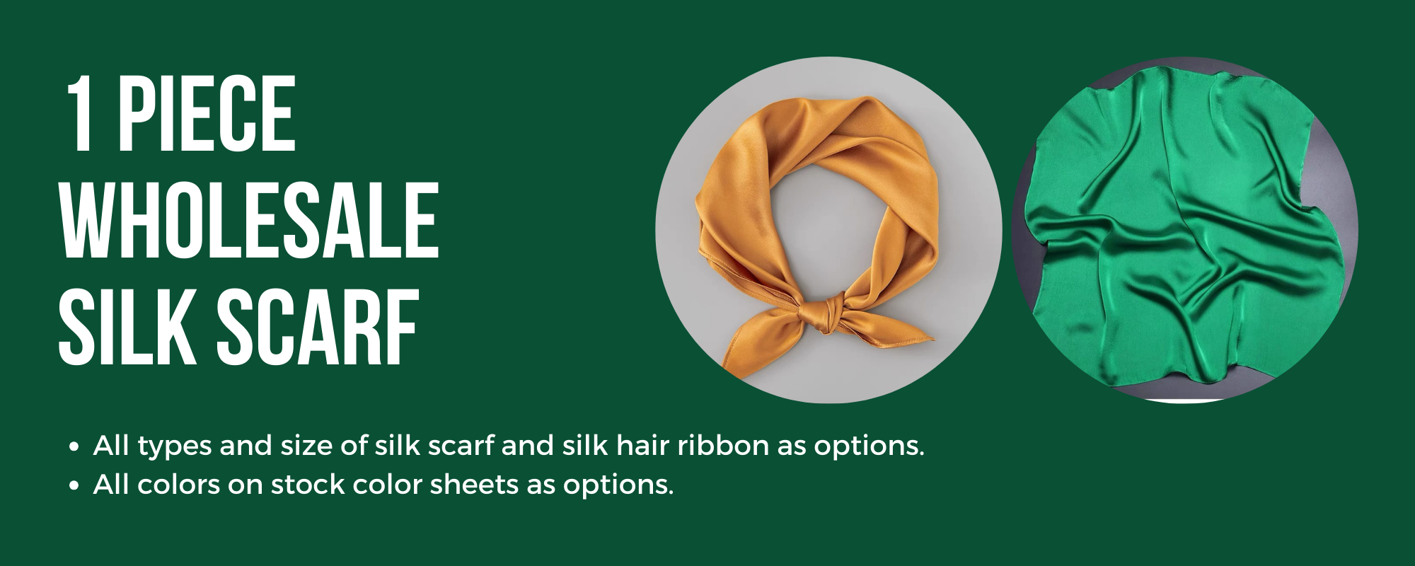 - 1 piece wholesale silk scarf / ribbon - no minimum order quantity. Custom silk scarf / ribbon with brand logo - low minimum order quantity. To learn more, please click on the below each luxury silk scarf link.