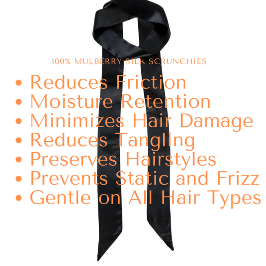The silk ribbon can be tied directly to the hair or tied to a silk scrunchie to create a long silk bow. Eg, skinny silk scrunchies and silk ribbon, classic silk scrunchies and silk ribbon, medium silk scrunchies and silk ribbon.