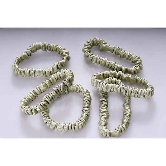Silk skinny hair ties - Olive - 6 pack - dropshipping