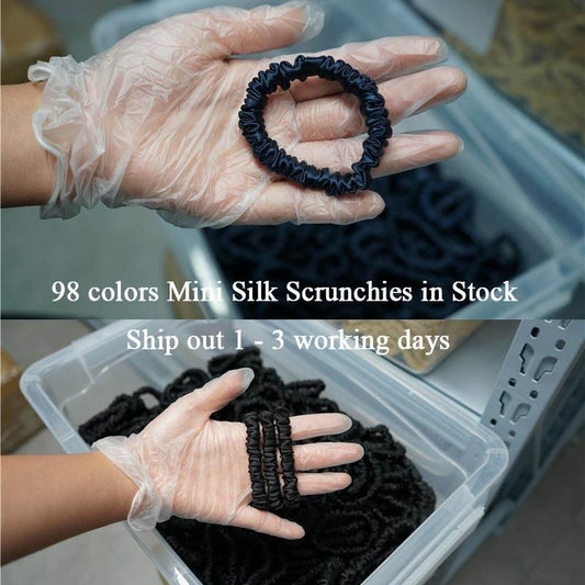 - Mini silk scrunchies have regular stock, order now - ship out 1 - 3 working days.