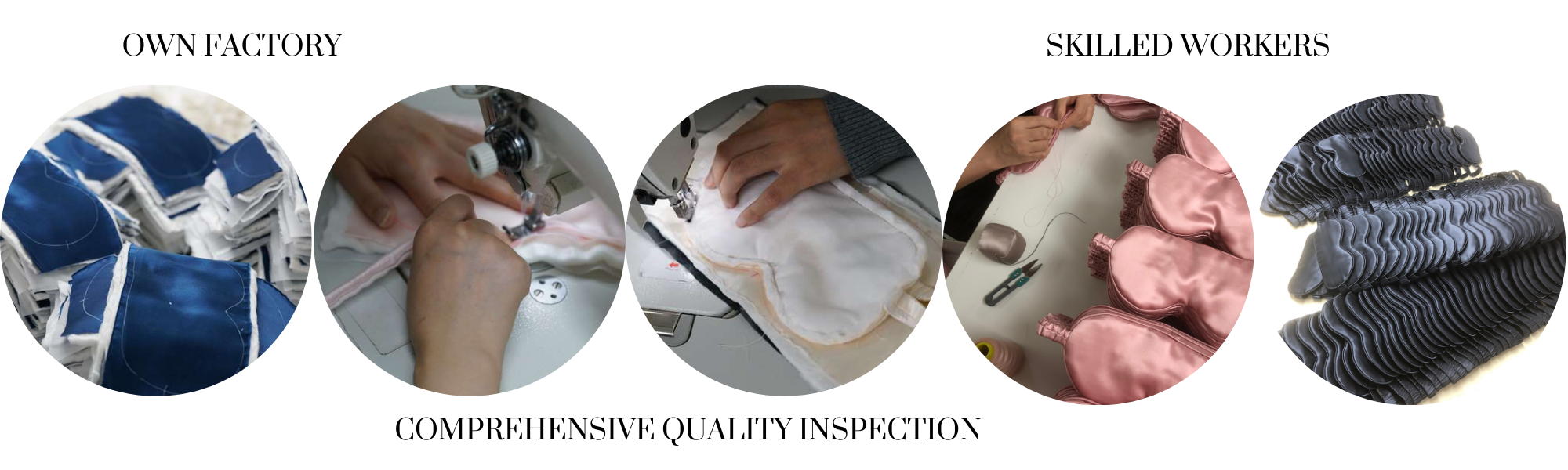 We are 100% Mulberry Silk Eye Mask Manufacturer - a reliable silk eye mask factory, produce real silk sleep mask 19/22/25/30 Momme, in different silk sleep eye mask color, types, size and different craftmanships.