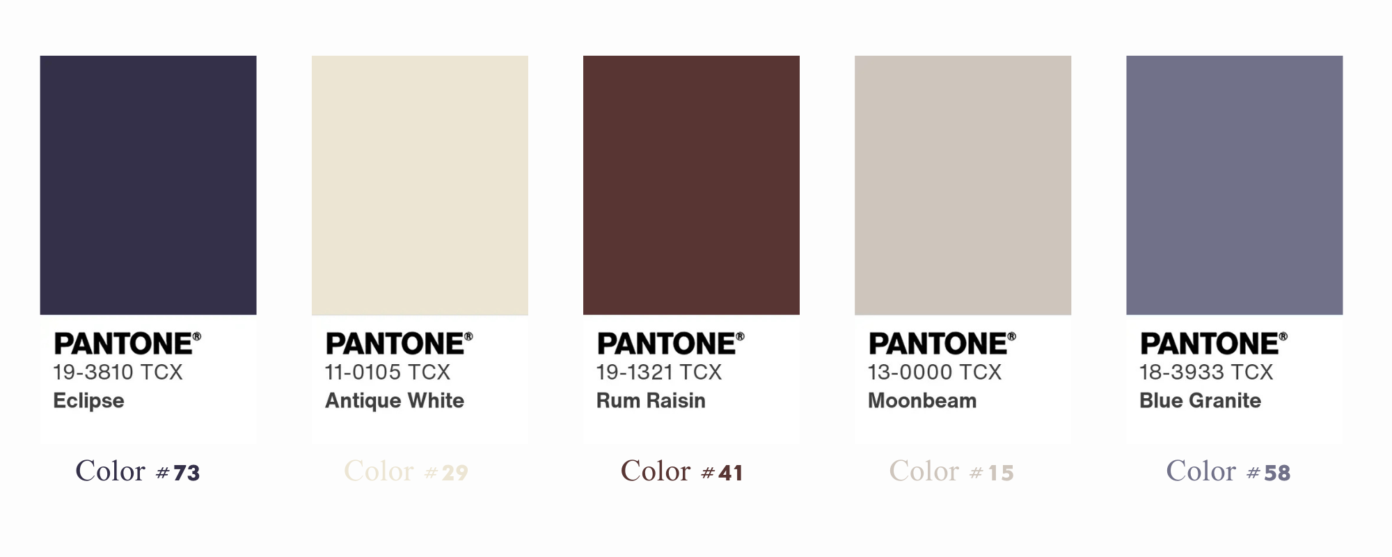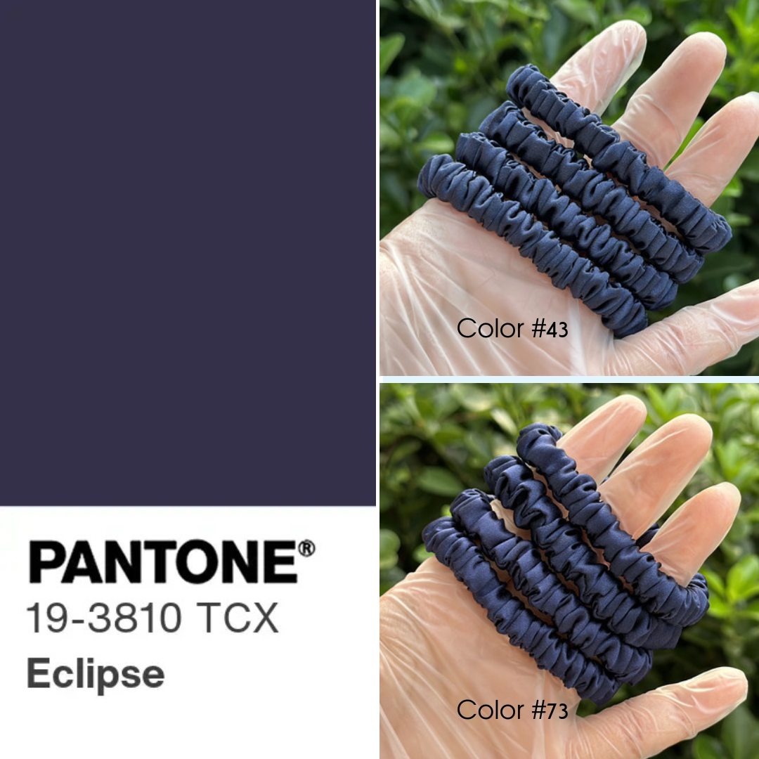 Color #43 Dark Blue and Color #73 Indigo Blue Both similar to Pantone 19-3810 TCX.