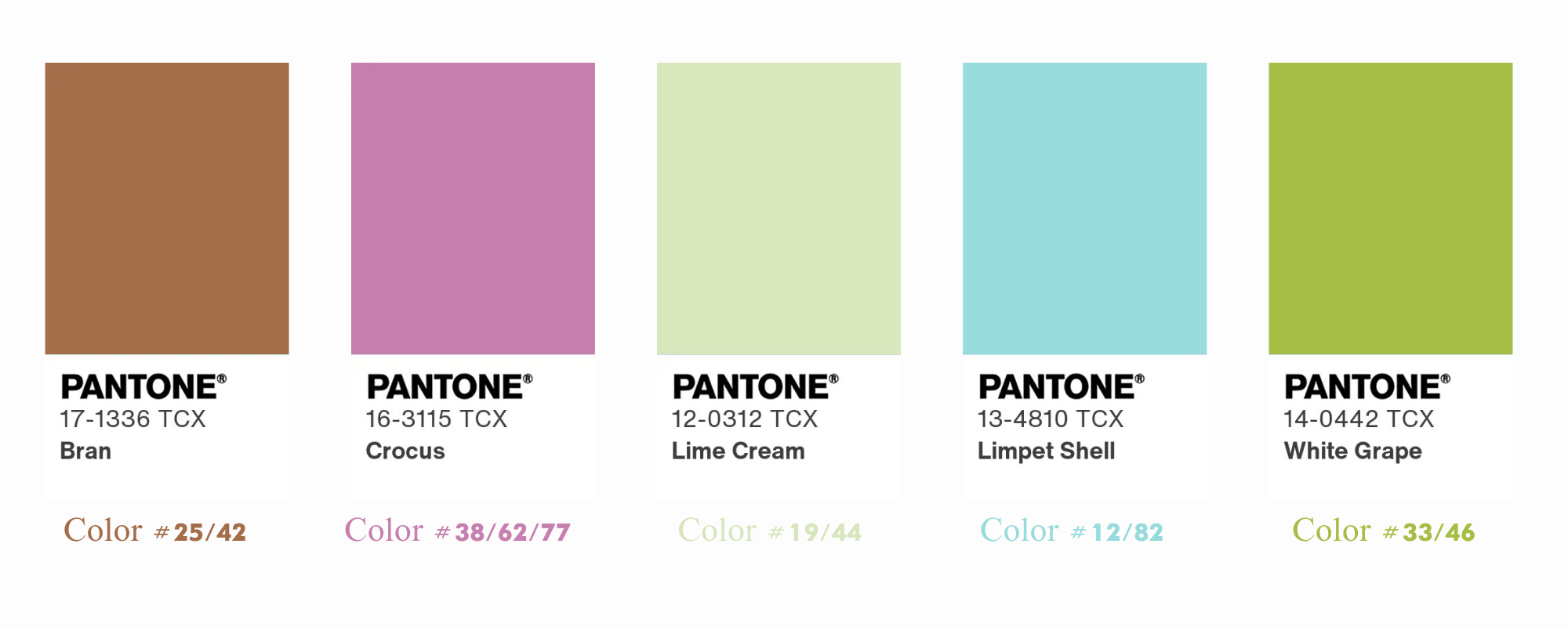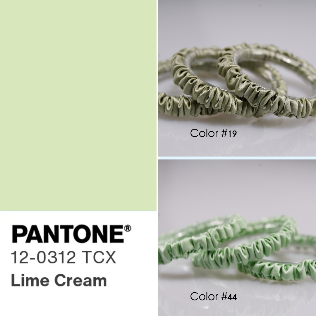 Color #19 bean green and #44 Wormwood, all are similar to Pantone 12-0312 TCX.