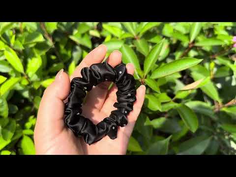 Discover the elegance of our Crystal Silk Scrunchies Black Classic. Made from 100% pure silk and embellished with beautiful crystals, these real silk scrunchies provide a luxurious yet practical accessory for all hair types. Available for pure silk scrunchies wholesale with no minimum order quantity, our black silk scrunchies diamond are ready to ship, allowing you to stock up on this stylish accessory.