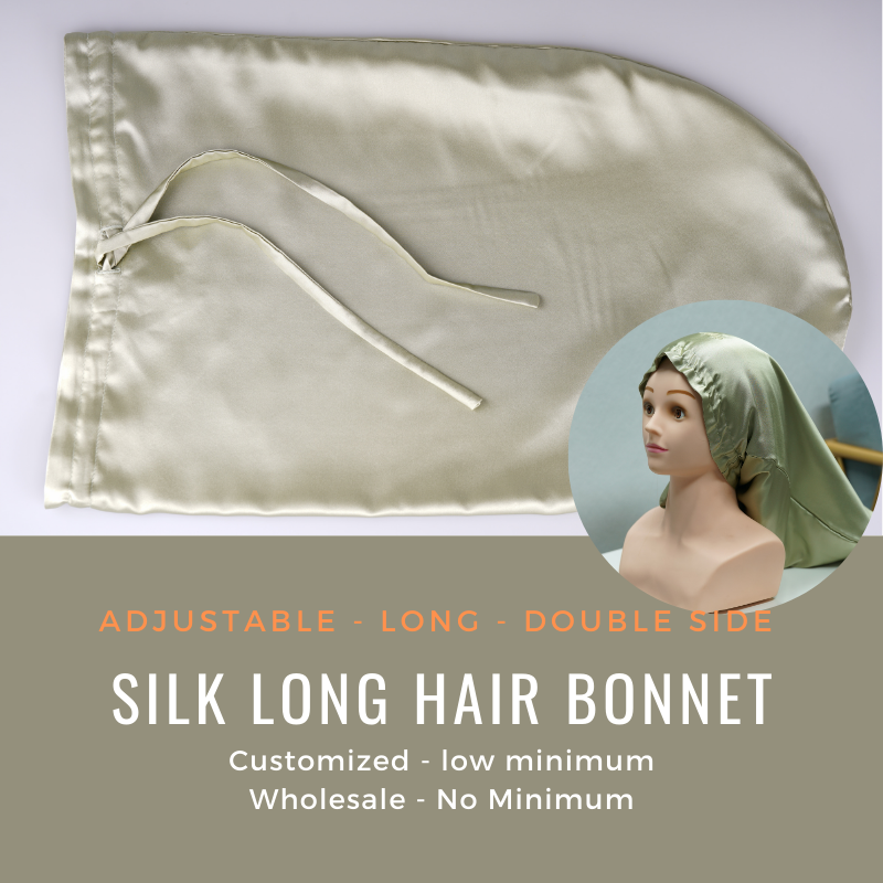Upgrade your hair care routine with our Drawstring Silk Bonnet Double Side - long silk bonnet best for long hair. These natutal silk bonnets are made from premium silk, offering both style and protection for your hair. We provide custom silk hair bonnets with low minimum quantities and wholesale mulberry silk bonnet with no minimums. Customize with your brand labels, logo embroidery, and unique prints, with extra cost.