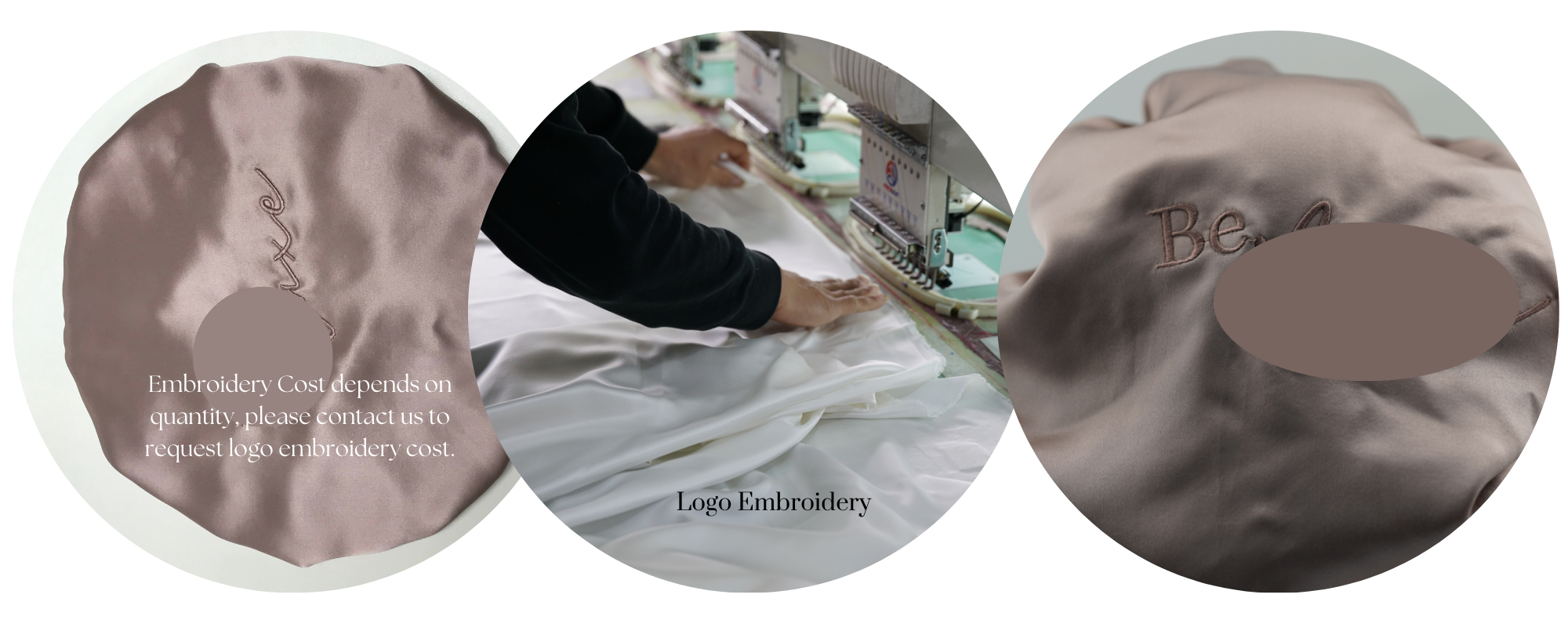- Logo embroidered silk bonnet: MOQ request 20 pieces per color per size at least. To have competitve price, we recommend you order 50pieces per color per size.