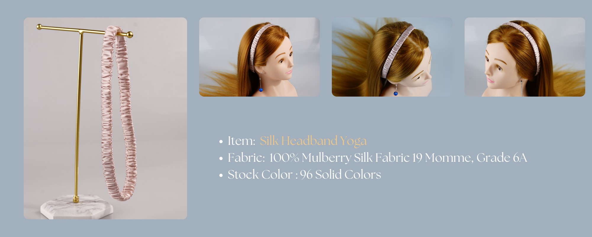 Discover the beauty of our Silk Headband Yoga, crafted from premium silk in 96 vibrant colors. Perfect for any occasion, these real silk headbands offer both sophistication and practicality. We provide custom silk headband with low minimum quantities and wholesale silk headband with no minimum requirements. Options for custom labels, logo embroidery, and prints are available, with extra cost.