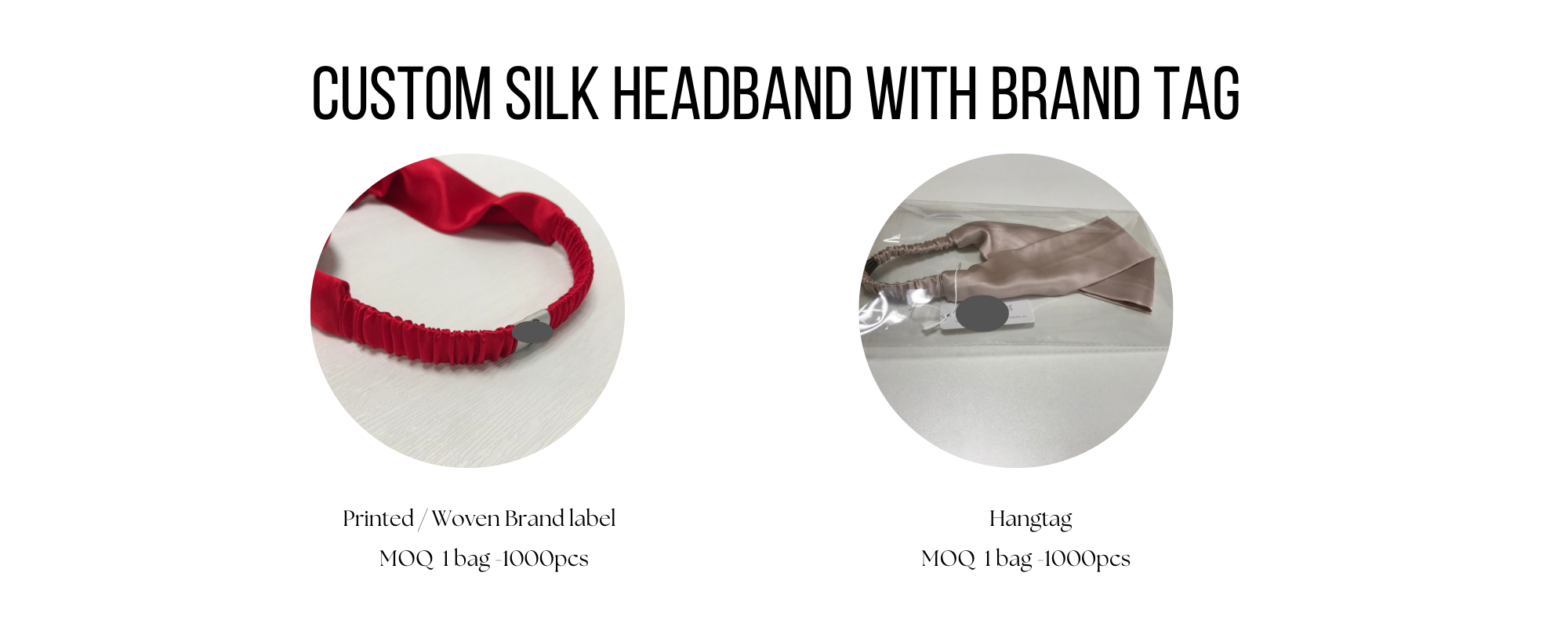 - Customized silk headband with brand tag : Pay customized brand label / hangtag cost - silk head wrap without MOQ;