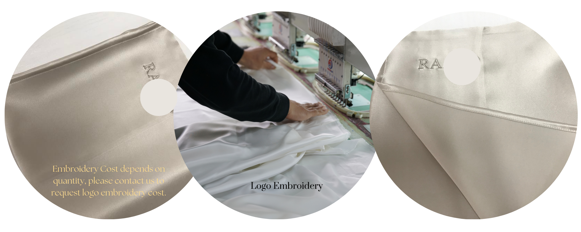 - Logo Embroidered silk pillowcase: MOQ request 20 pieces per color per size at least. To have competitve price, we recommend you order 50pieces per color per size