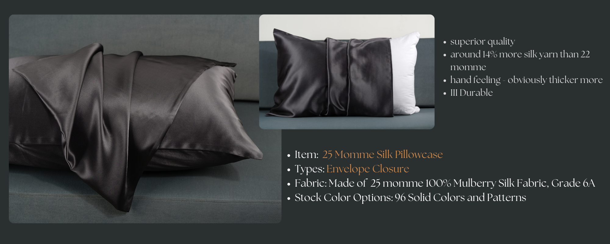 - 25 Momme mulberry silk pillowcases are heavy luxury silk pillowcase.