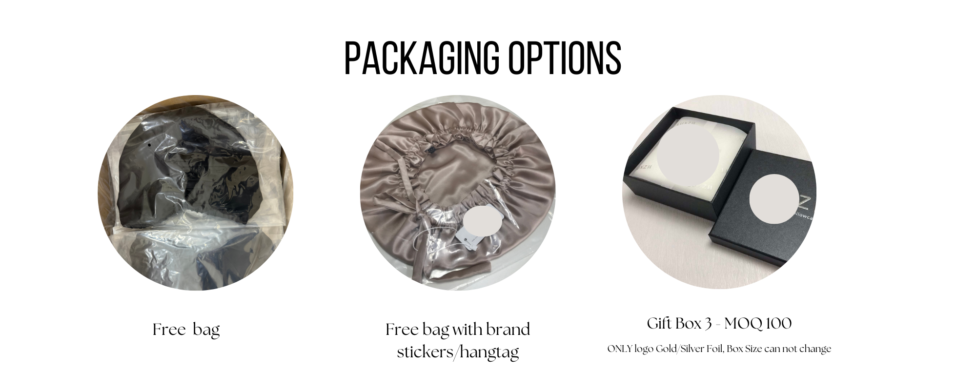 - Custom pattern silk bonnet : Recommend order 1 pattern for your all silk products to make each products have low MOQ.