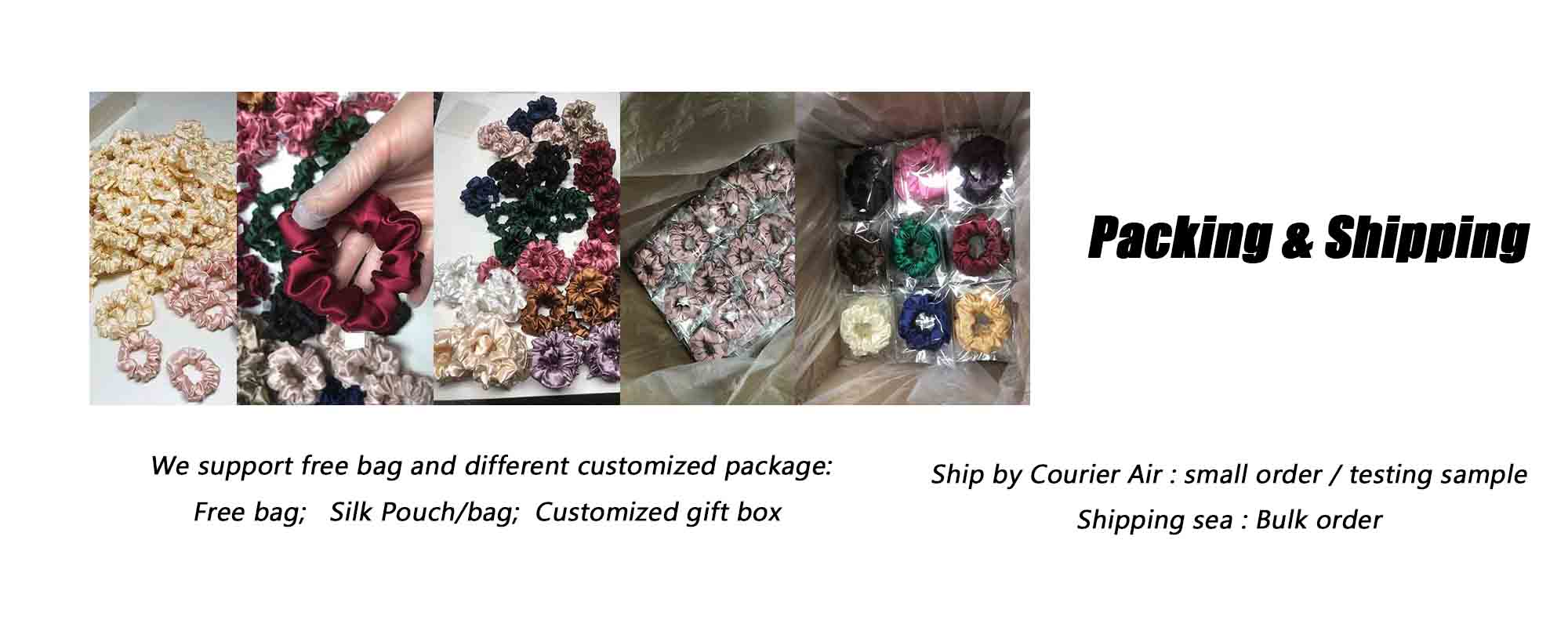 - Custom silk scrunchies : Pay customized brand label cost - silk hair scrunchies without MOQ; Pay customized brand hang tag cost - silk hair ties without MOQ.