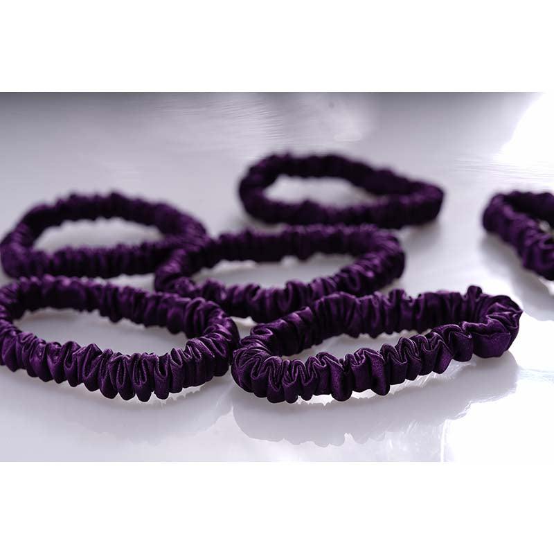 Mini silk hair ties - Dark Purple - 6 pack - dropshipping