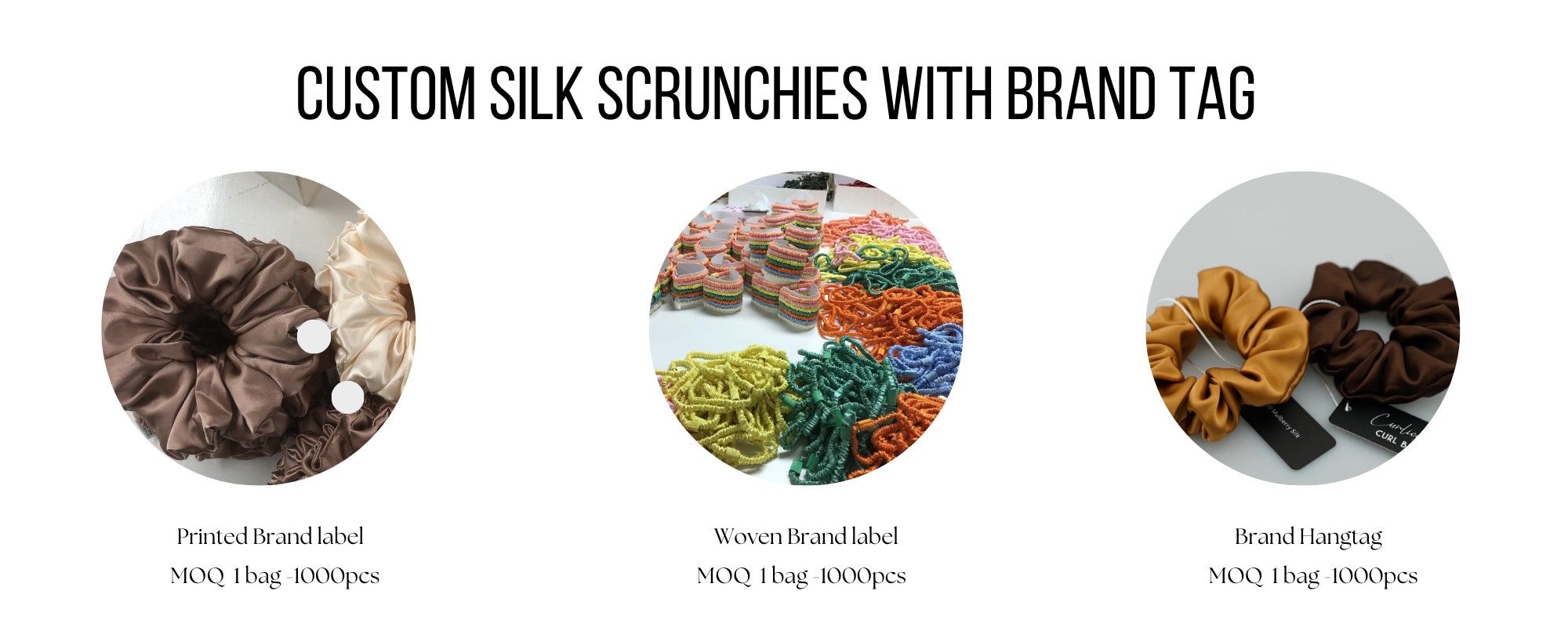 - Customized silk scrunchie with brand tag : Pay customized brand label / hangtag cost - fluffy oversize silk hair scrunchies without MOQ;