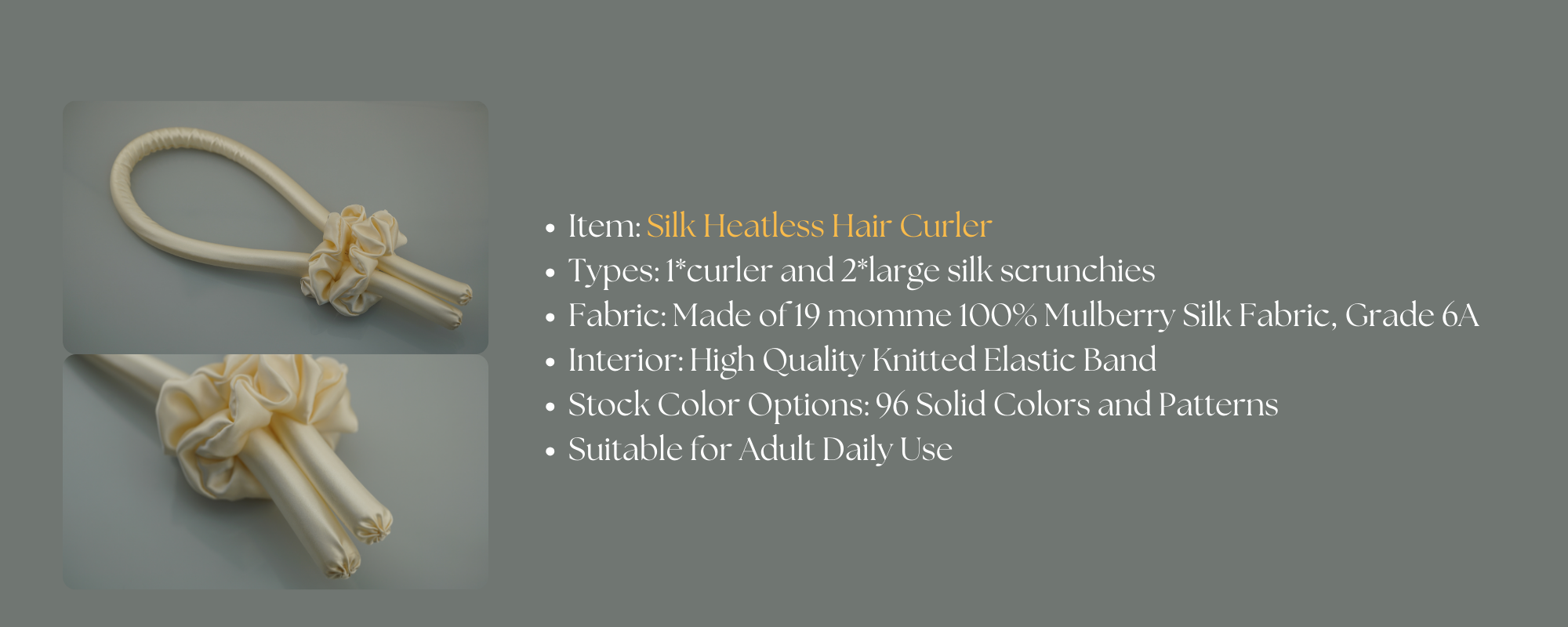 Experience the perfect blend of luxury and convenience with our silk heatless hair curlers. Ideal for those who value their hair's health and beauty, our products offer a natural, damage-free way to achieve stunning curls. Embrace the effortless elegance of our custom-made, high-quality silk hair curlers and transform your hair care regimen.
