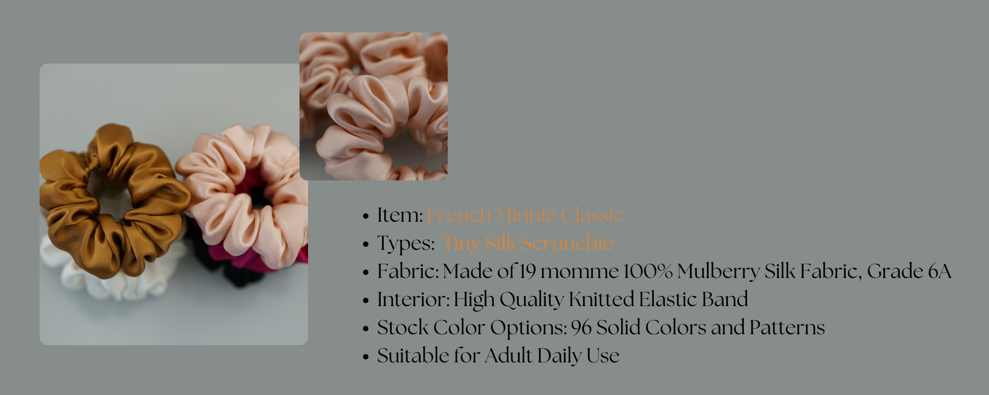 - Types: Tiny Silk Scrunchie & French Minnie Classic